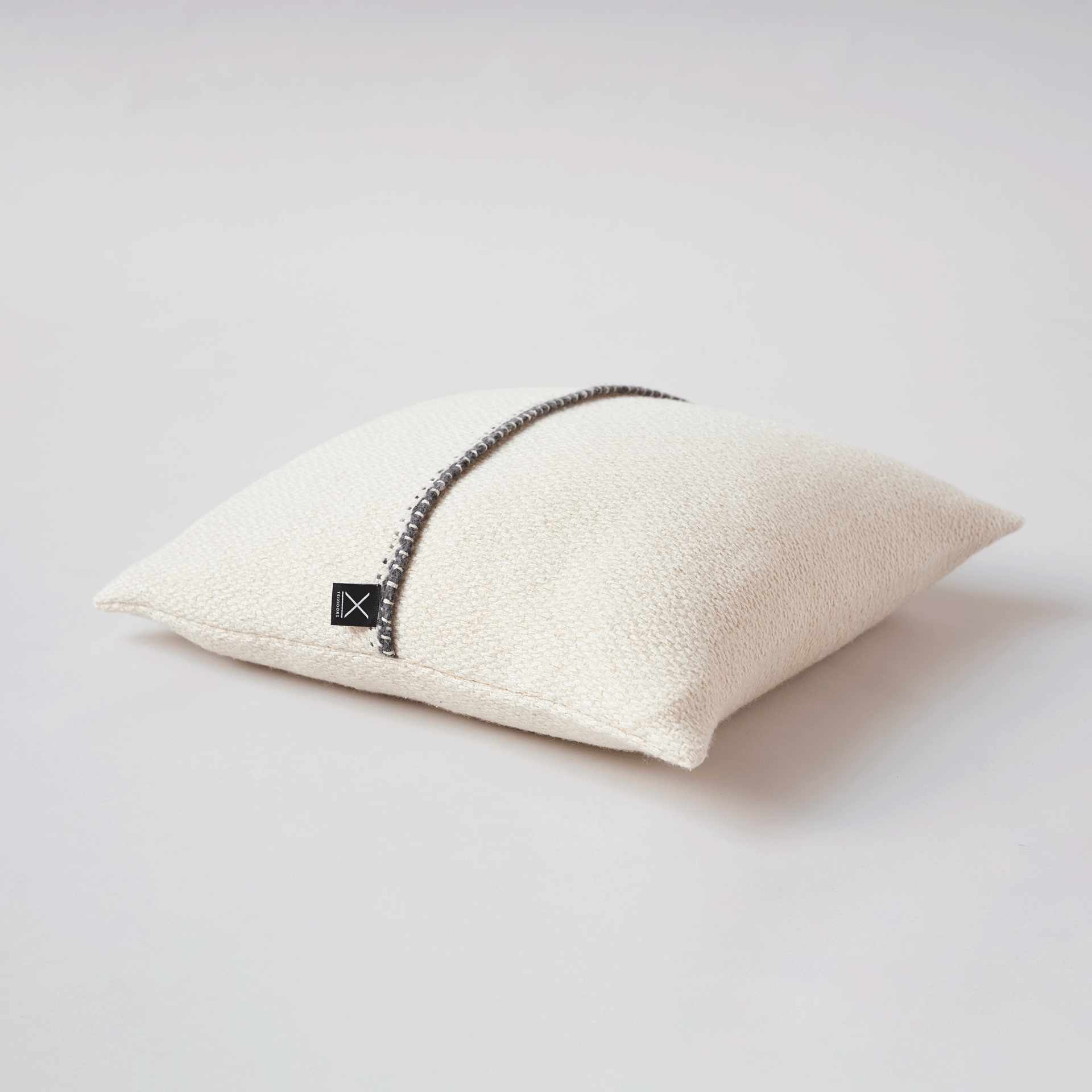 The delicacy of silk and the density of the merino wool lend a soft texture and singular resilience to the Hydra cushions. Available in mustard, raw and grey colour tones, always interwoven with wool in its raw natural colour with a playful dark grey edge trim.